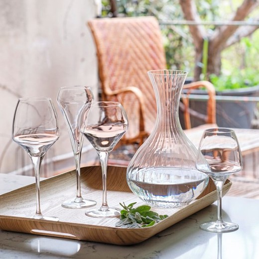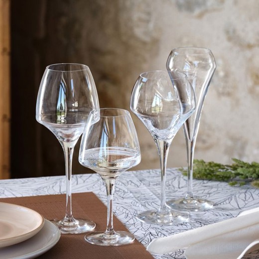 Glasið er framleitt úr hertu gleri (kwarx) sem þýðir gler án allra litarefna (litur vínsins nýtur sín þar af leiðandi afar vel). Glansandi áferðin helst óbreytt og endingartíminn er góður miðað við hefðbundna notkun á veitingahúsum.