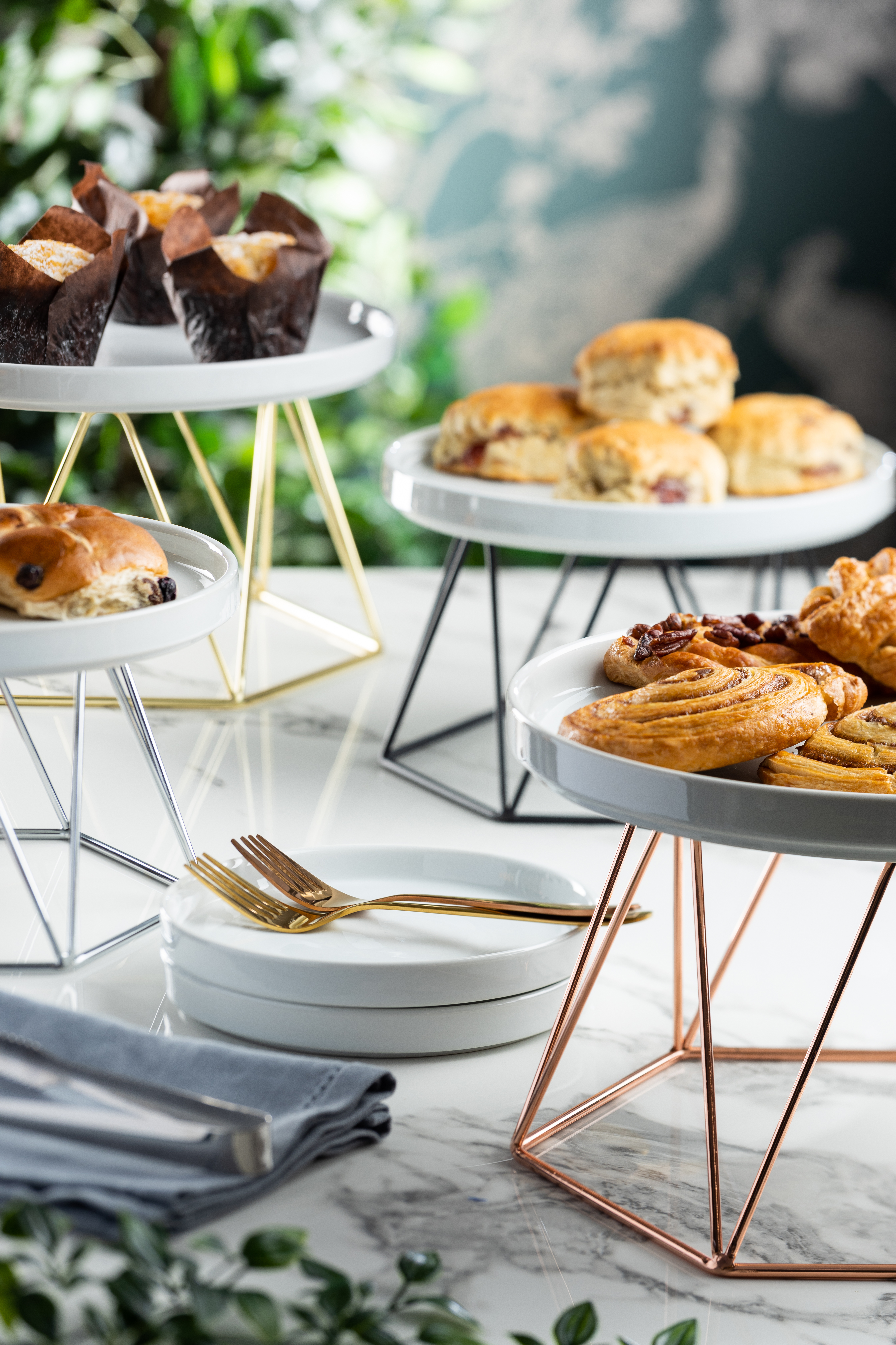 Presentation stál standur fyrir þrjá diska