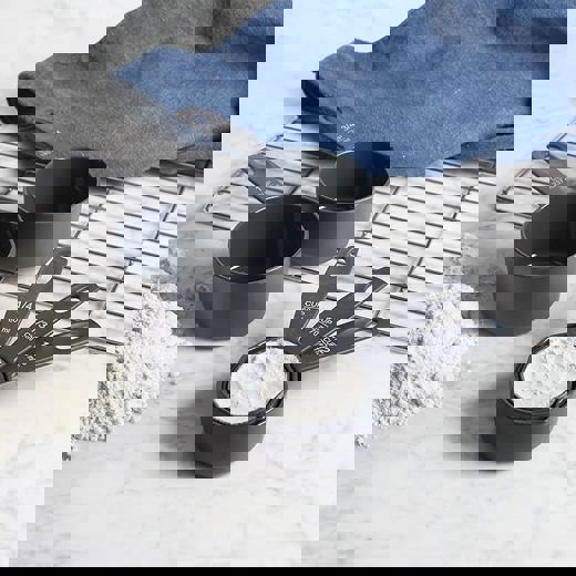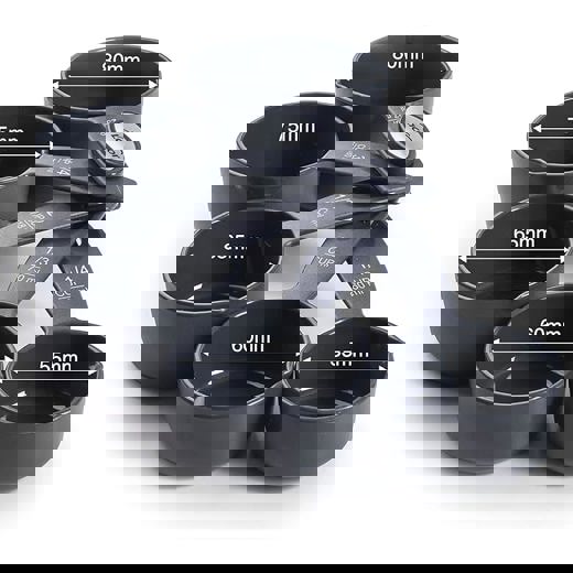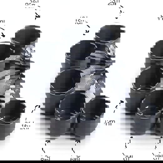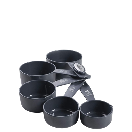 Þetta bollamælisett er með 5 mælibollum sem mæla bæði bolla (cups) og millilítra.