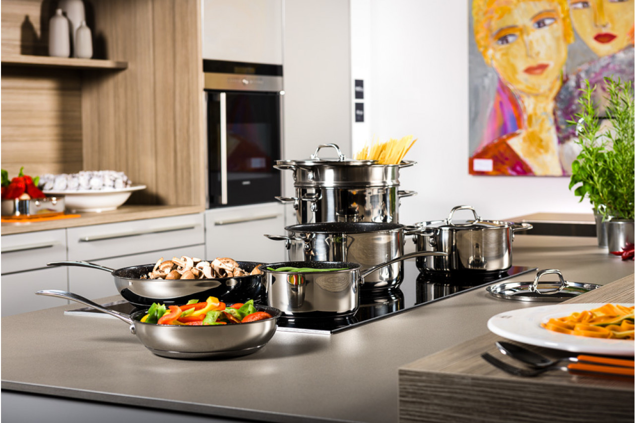 iamond línan frá frá Mepra eru úr ryðfríu stáli og er með Eclipse non-stick húð. Þessi nýjasta kynslóð af non-stick húð er einstaklega rispuþolin og laus við PFOA. Er án allra skaðlegra efna. Þolir rispur 30x betur heldur en hefðbundna non-stick húðin.