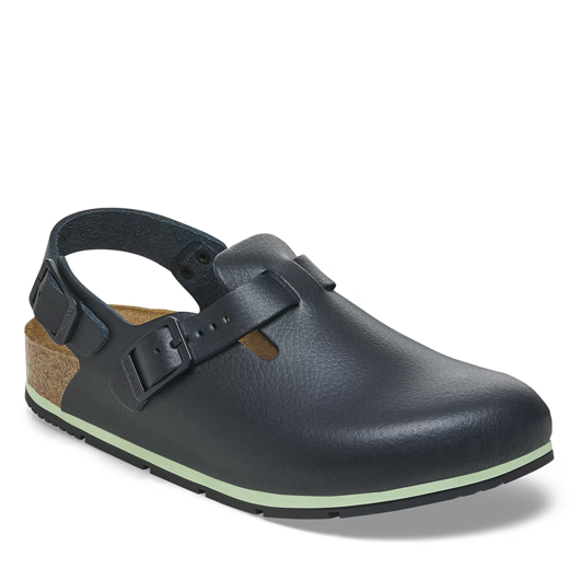 Birkenstock Tokio Pro eru vinnuklossar sem sameina þægindi, stuðning og öryggisstaðla. Tokio eru Fullkomnir fyrir krefjandi starfsumhverfi þar sem mikið mæðir á fótunum. Skórnir byggja á klassísku Tokio módelinu, en eru uppfærðir með rennivarnarsóla (non slip) og távörn fyrir aukið öryggi.