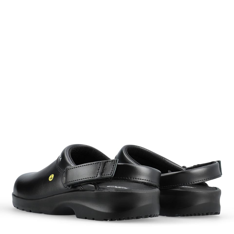 Léttir og góðir leðurskór sem anda vel og eru vatnsheldir. Góður sóli með hálkuvörn, ESD - kemur í veg fyrir myndun stöðurafmagns. Henta vel fyrir starfsfólk í iðnaði og á heilbrigðisstofnunum. Má þvo við 30°C.